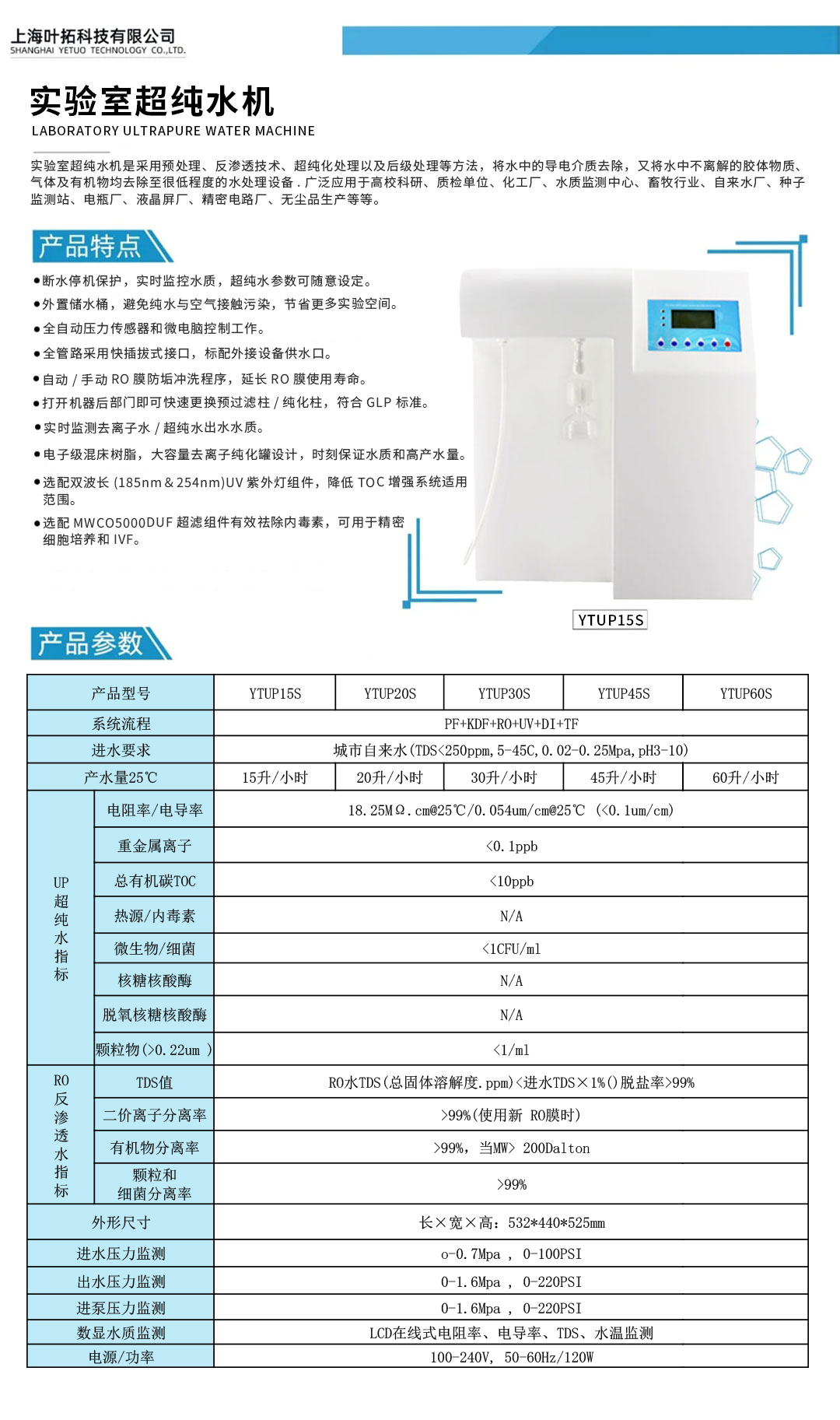 - 超長壽命254&185nm雙波長UV 紫外燈,有效殺菌,降解有機物,進口UF 超濾組件,截留分子量:MWCO5000D,有效去除熱原/內毒素
