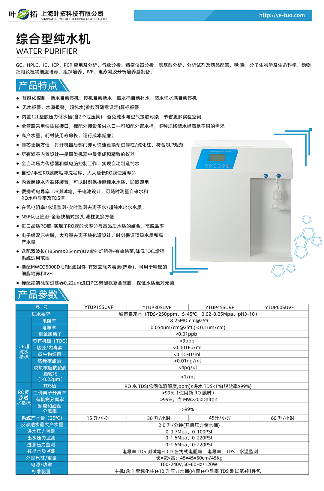 上海葉拓 YTUP60SUVF 綜合型純水機