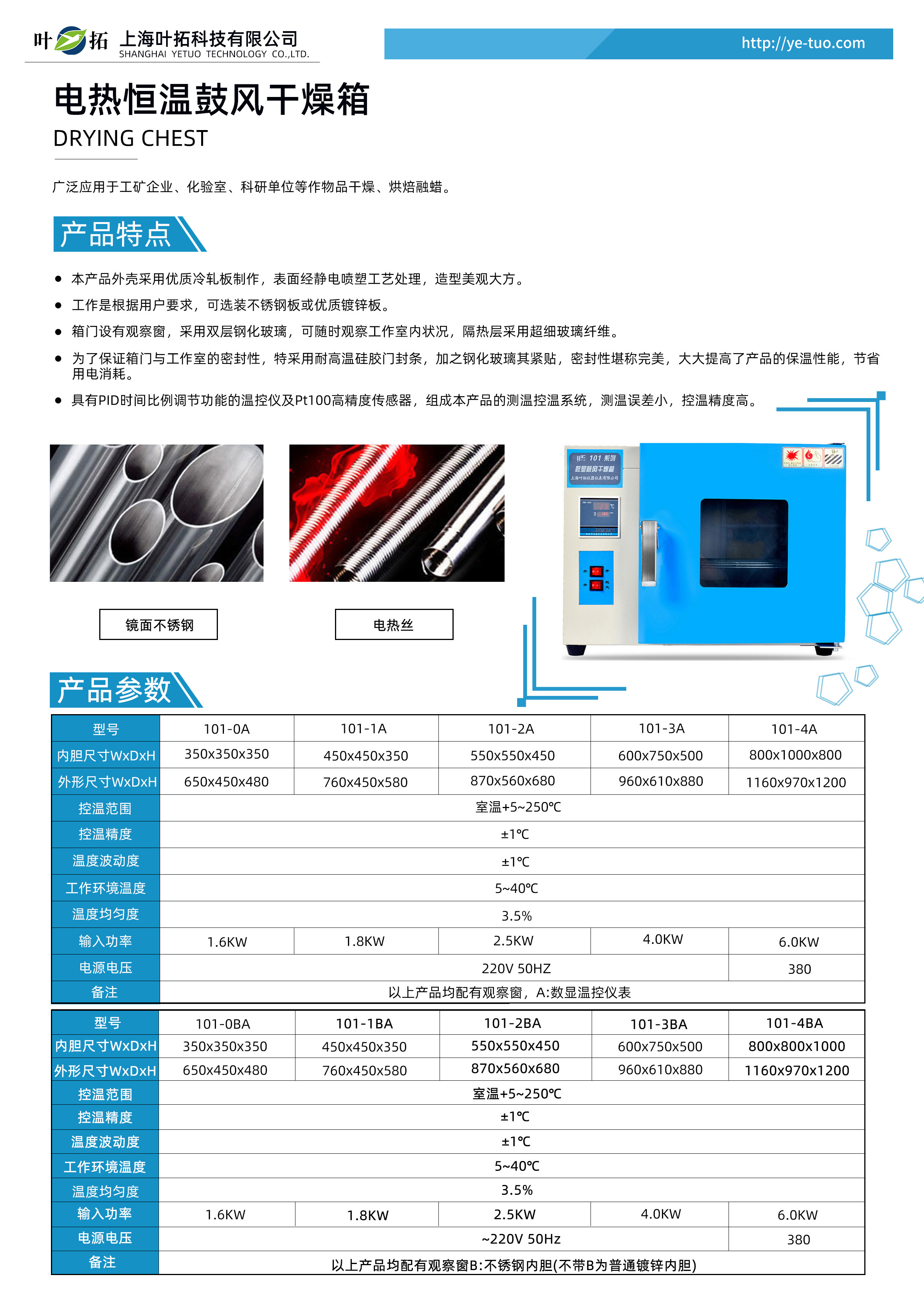 葉拓101系列電熱鼓風(fēng)干燥箱產(chǎn)品特點