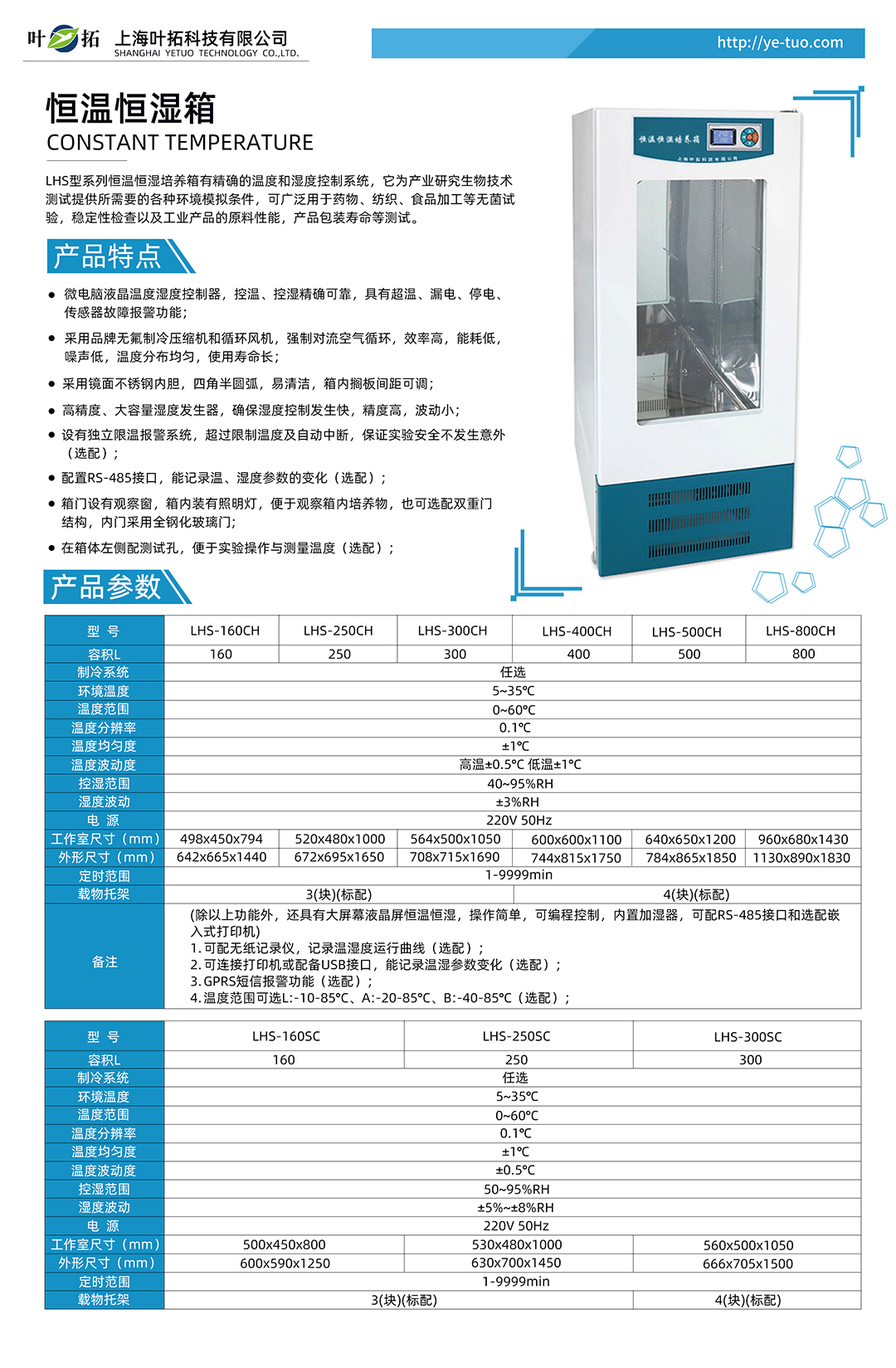 葉拓LHS系列恒溫恒濕培養箱產品特點