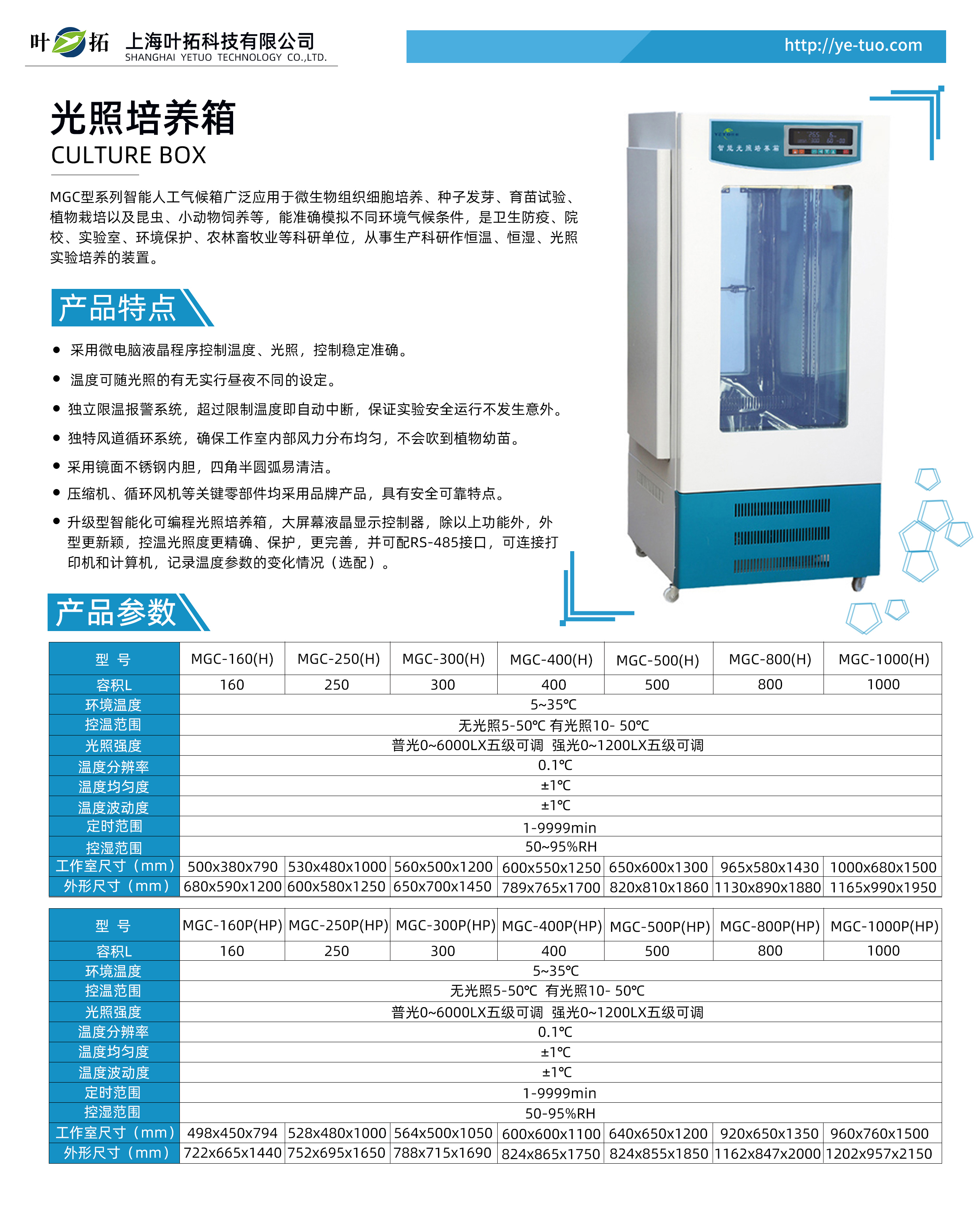 葉拓MGC人工氣候培養(yǎng)箱/光照培養(yǎng)箱產(chǎn)品特點