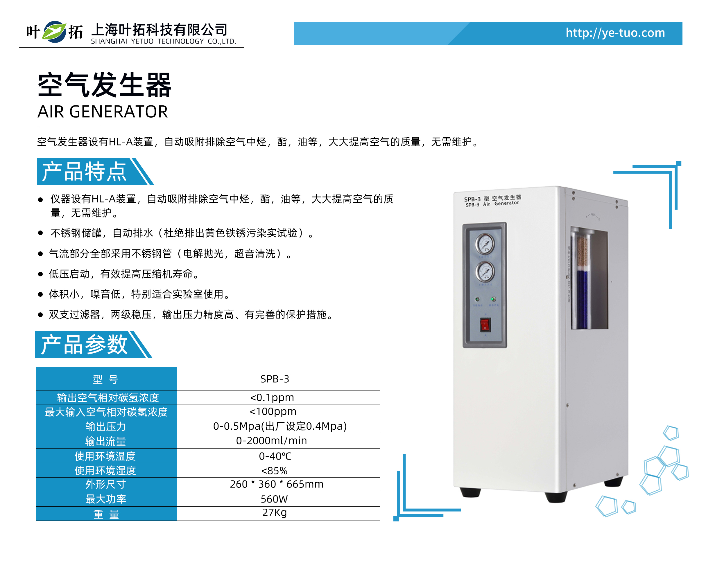 葉拓 SPB-3 空氣發(fā)生器產(chǎn)品特點