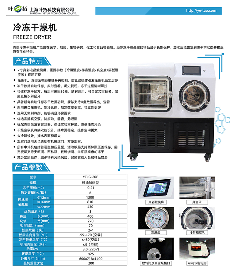 上海葉拓 YTLG-20F 中式真空冷凍干燥機(jī)