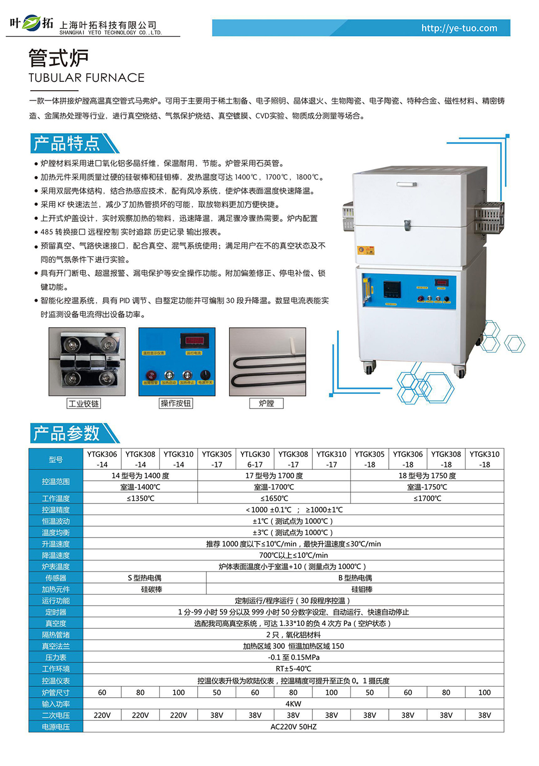 葉拓YTGK系列開啟式真空管式爐產品特點